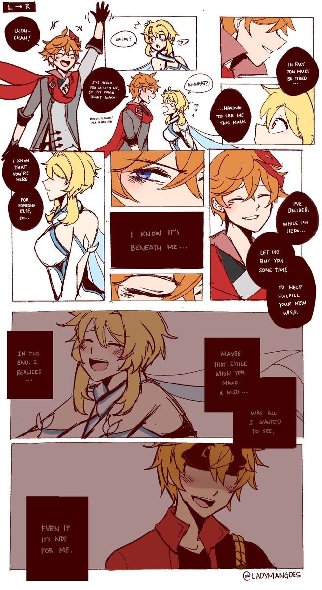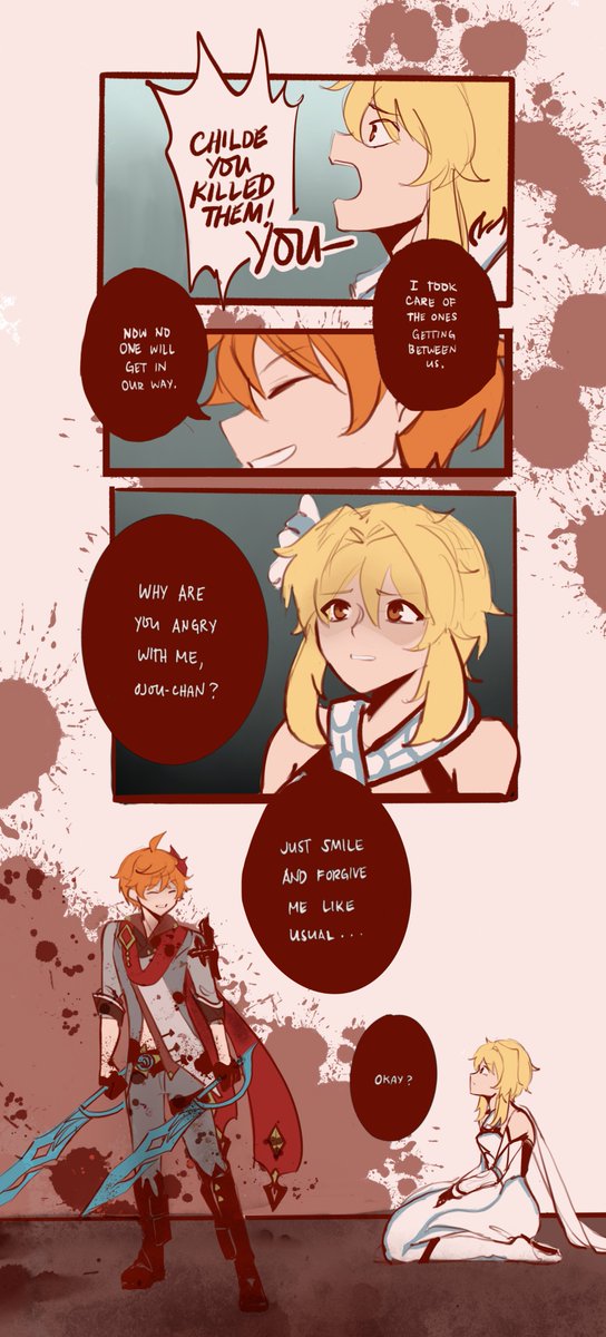 thank u for wait!! here's sum year-end chilumi angst... ;w; once again, childe being attached to lumine, but also being far too gone that he’s starting to lose himself haha whaaat 💔 #chilumi #genshinimpact
