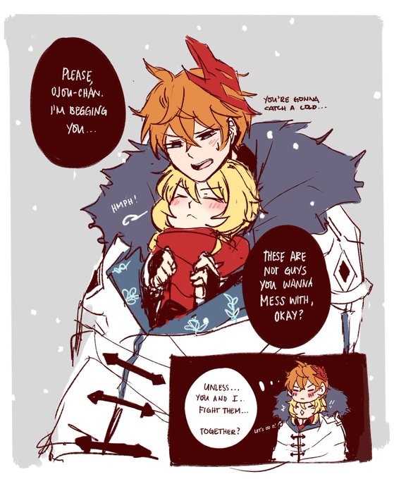 i swear that harbinger coat built for two people fr fr- 😳😳childe's prepared to warm up lumine however possible!! can't wait for them to meet again... 🥺❤️ #chilumi #genshinimpact