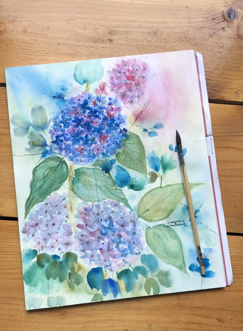 Study: Typical summer corner of our garden with hortensia. #flower #art #artist #ArtistOnTwitter #Watercolour #artwork #painting #artistsupport #artcommunity