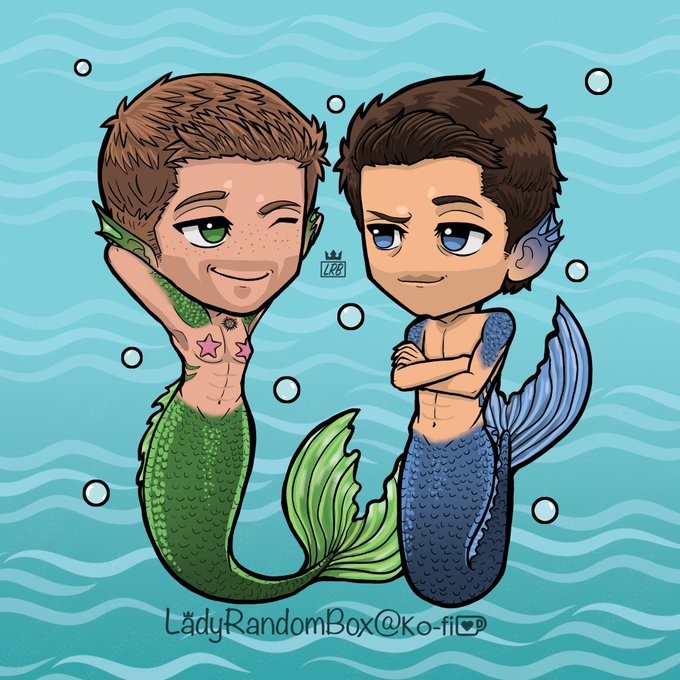 Late, but happy #mermay! ↪️My ko-fi⬇️ ko-fi.com/ladyrandombox #mermay2022 #castiel #deanwinchester #destiel #deancas #MyArt