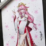 Yae miko done! 🌸💜 Sorry guys for stay awhile for almost two months, these times has been really hard for me due to anxiety disorder 😥 but I'm trying to come back to drawings . . . . #genshinimpactfanart #genshin #yaemiko #yaemikogenshinimpact #genshinimpact #electro #game
