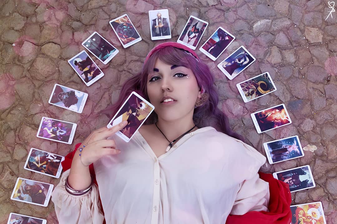 ✨Why don't we just ask the cards?✨ Violet, MC/Apprentice cosplay from @thearcanagame 📷: @soxakufoto #TheArcanaGame #thearcana #thearcanacosplay #cosplay #thearcanaoc #apprenticeoc #photography #thearcanaapprentice