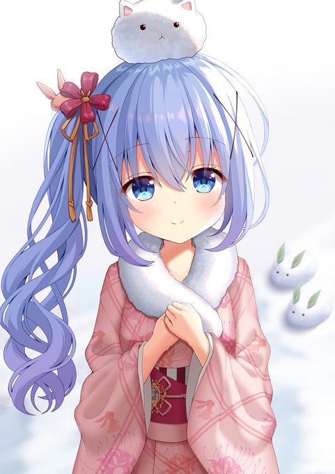 振袖チノちゃん きららMAX3月号扉絵のピンク浴衣も似合ってたのでそのまま冬スタイルに #gochiusa