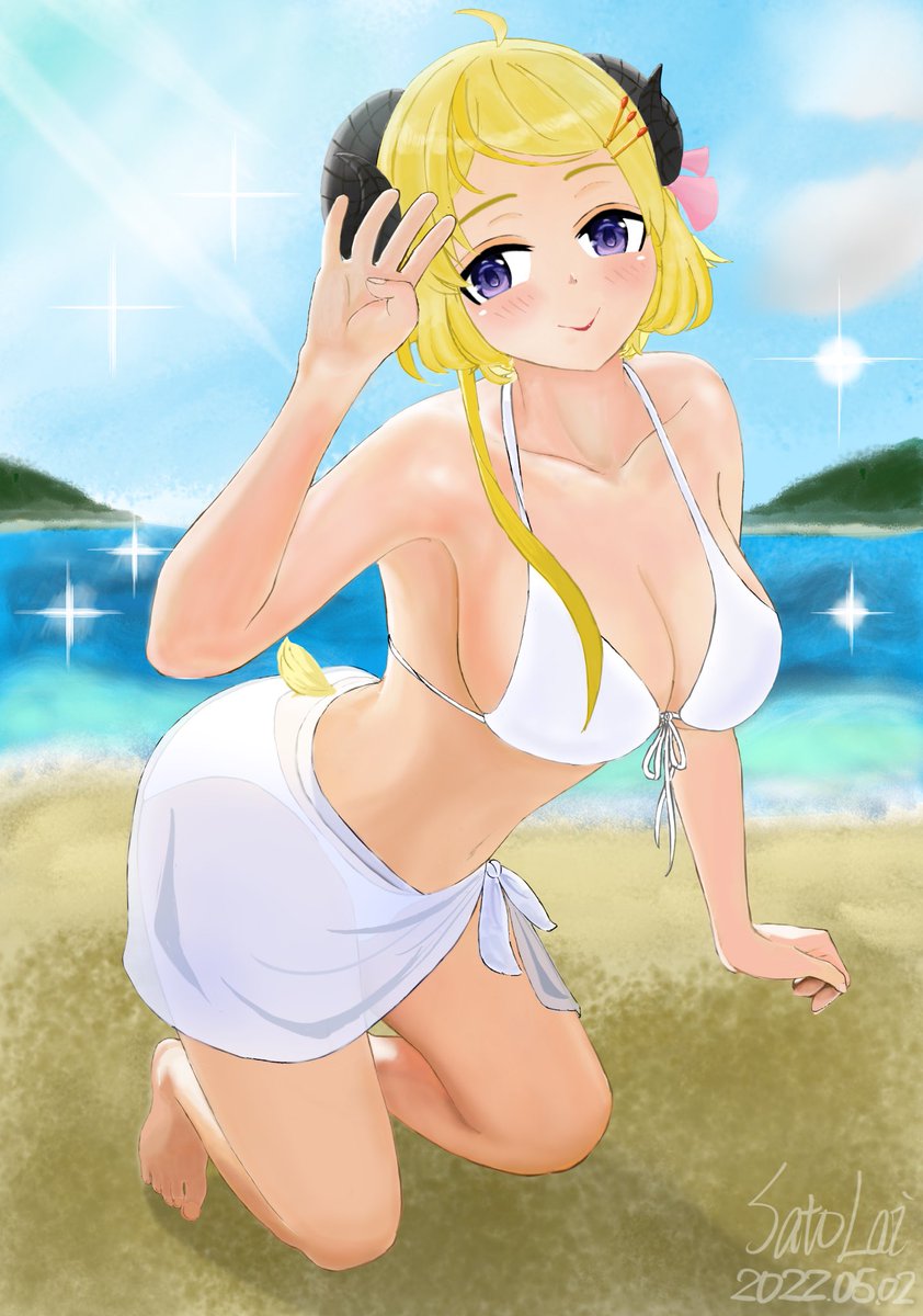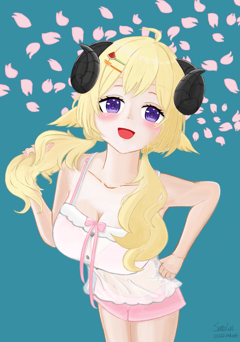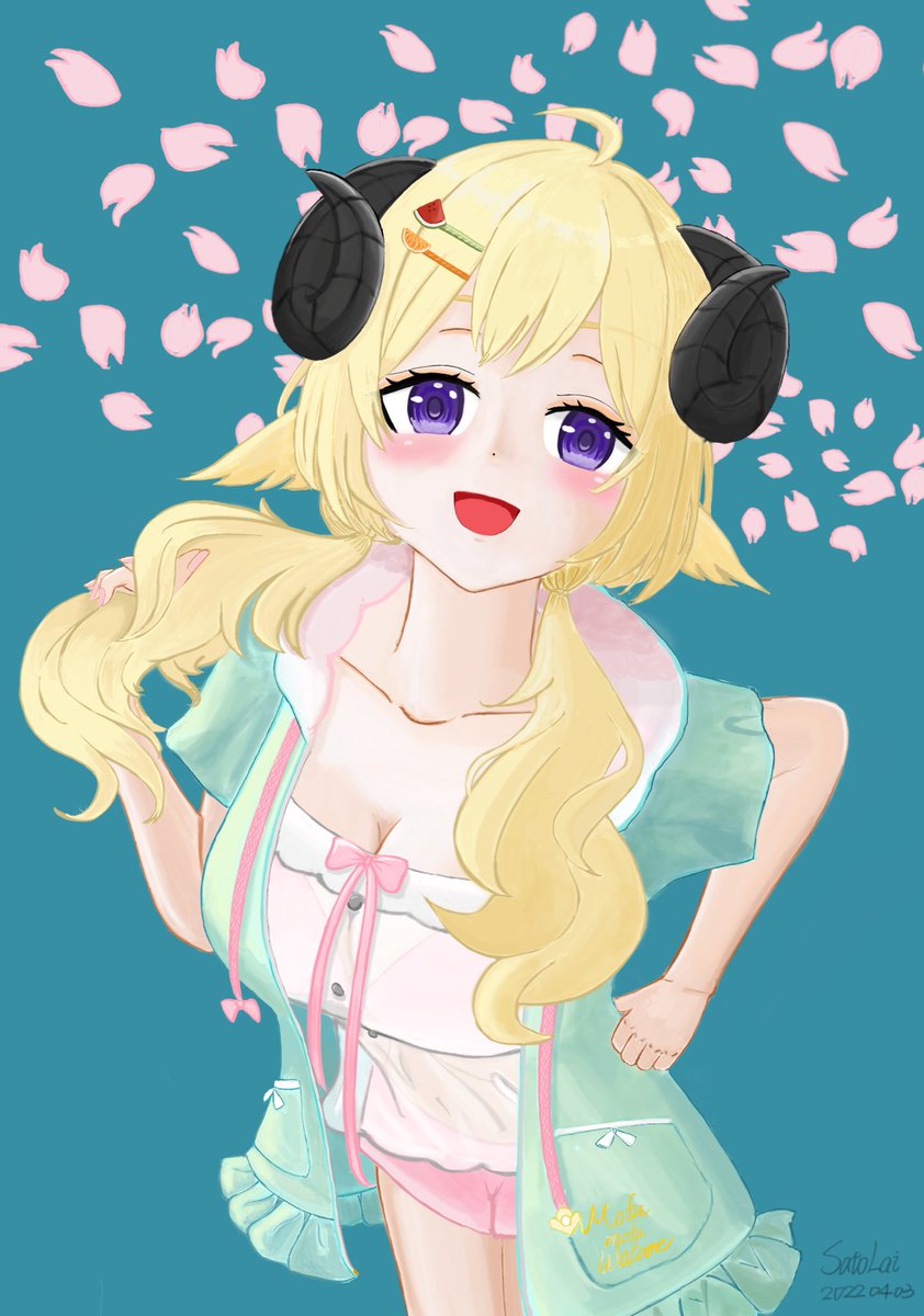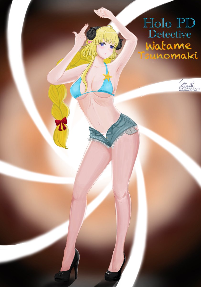4 19 #つのまきあーと #ホロライブサマーに願いを わための水着を描いてみました I tried to draw Watame’s swimsuit. 22/05/03 01:56