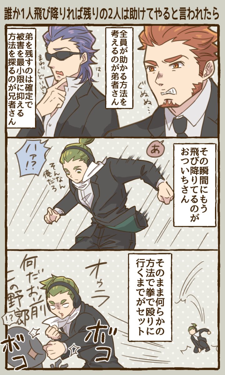 緑の人はおかんポジ (但し1番血気盛んなのも緑の人)