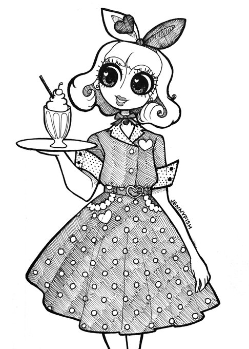 Cute girl inktober day 4: 60’s Diner! I took some liberties with the theme though and drew Angelic Pretty’s Milkshake set (rather than a true vintage style diner uniform dress)! 🍽 #Inktober #inktoberday4