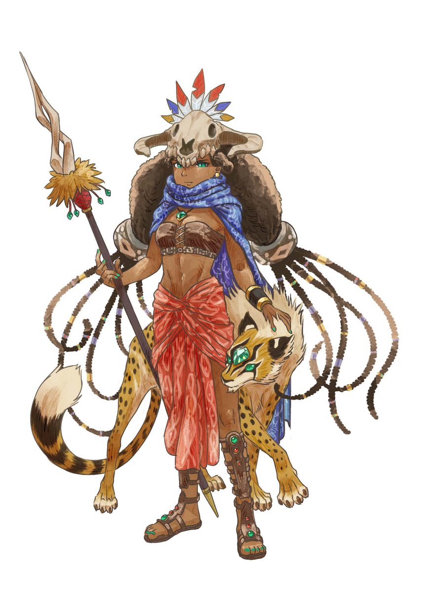 キャラデザ練習 砂漠地帯に住む狩猟民族の姫🐆 相棒の魔物とは宝珠の力で結ばれていて、抜群のチームワークで獲物を追い込む⚔ #illustration #drawing #絵描きさんと繋がりたい
