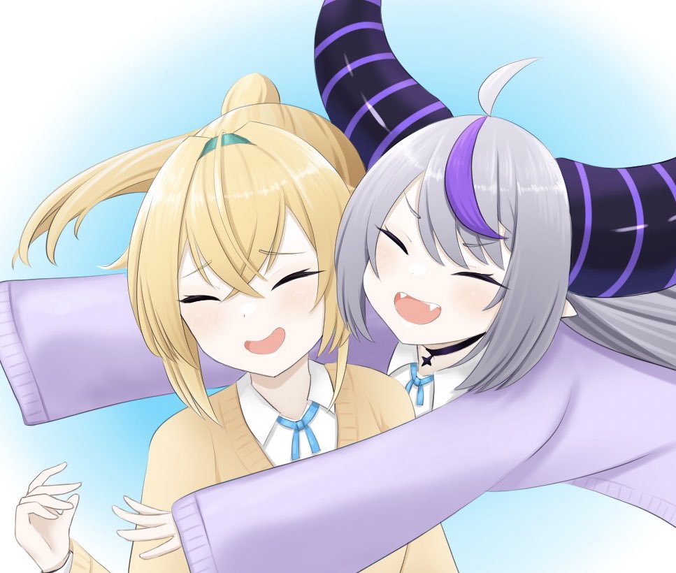28 94 いろはス学生パロ 🛸「うおりゃー!」 🍃「きゃー!」 #laplus_artdesu #いろはにも絵を 22/02/27 21:12