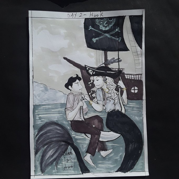 Inktober day 2- Hook [I'm using @diesechuly 's #chulysinktober and coyote_ralyn list from Instagram] . #inktober2022 #Inktober #drawingchallenge #drawing #Mermaid #pirate #sea