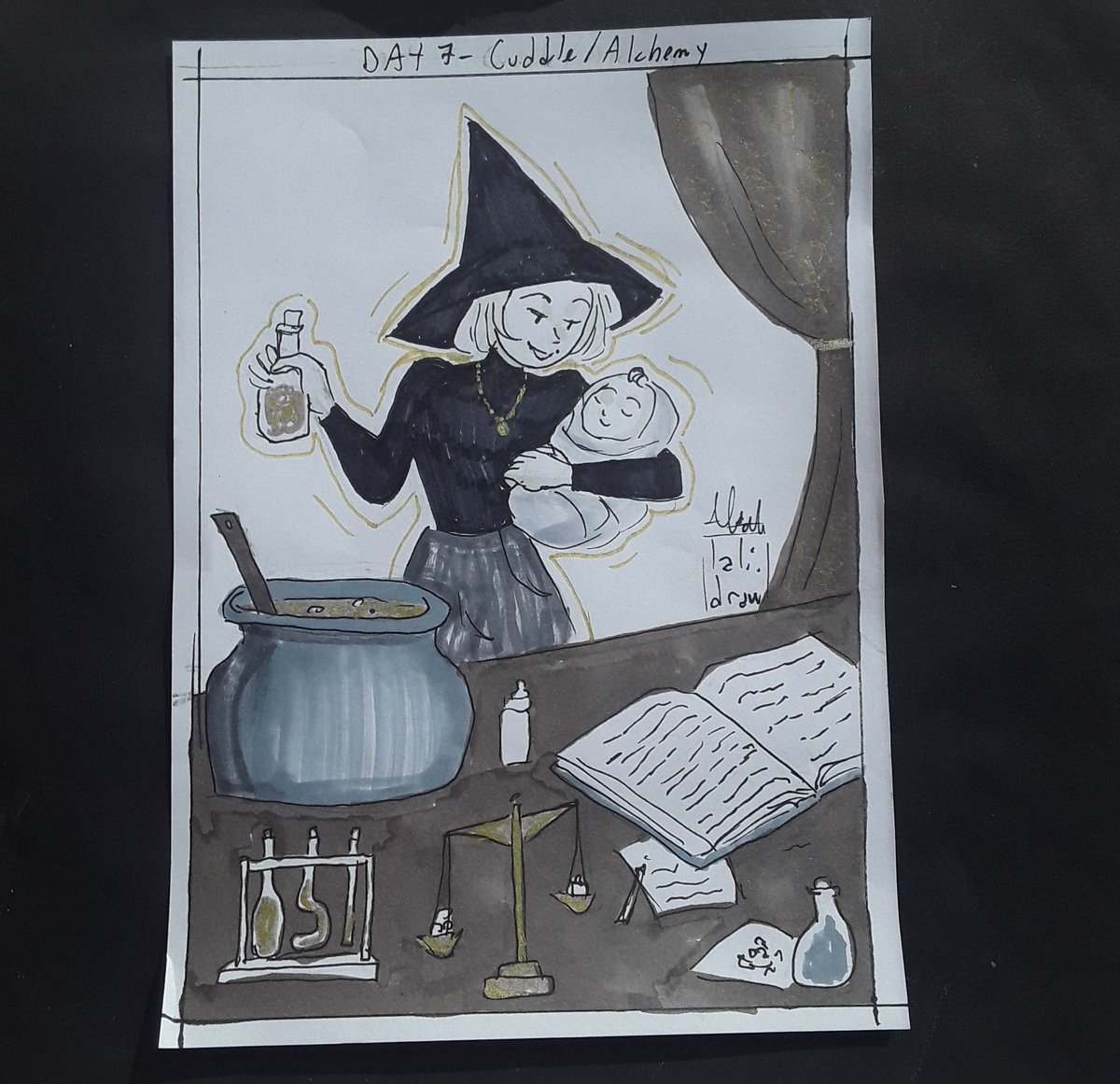Inktober day 7- Cuddle/Alchemy [I'm using @diesechuly 's #chulysinktober and coyote_ralyn list from Instagram] . #inktober2022 #Inktober #drawingchallenge #drawing #witch