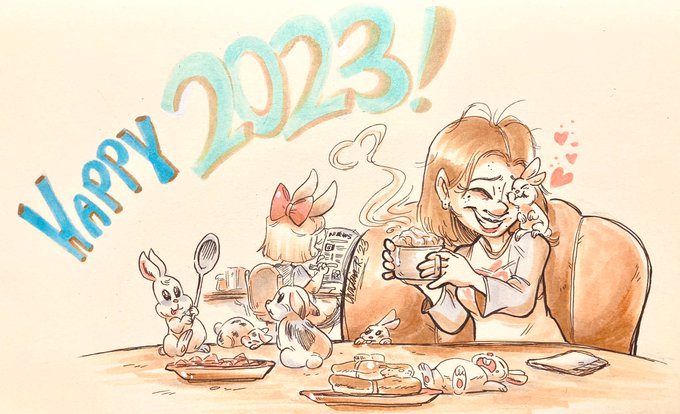 First picture of the new year is traditional since my desktop is too busy updating. Happy Year of the Rabbit! 🐰☕️🎀💖 #HappyNewYear #artistsontwitter