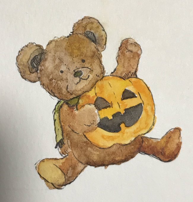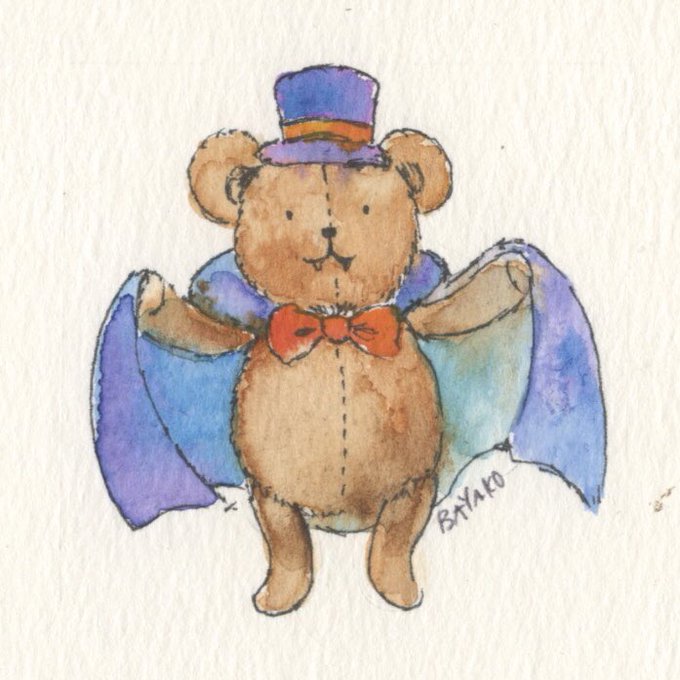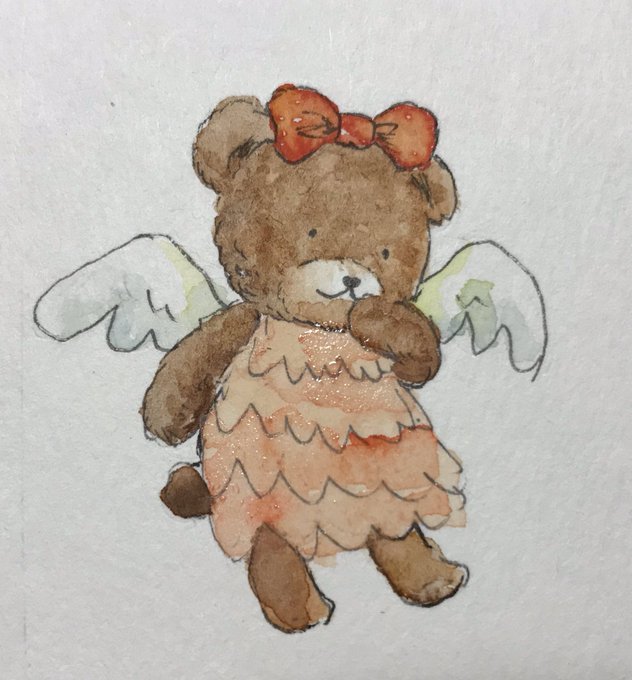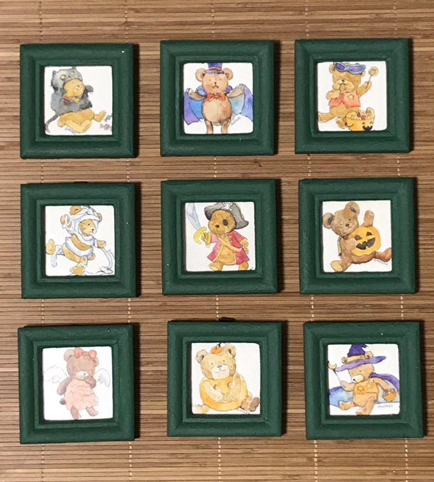 1 6 #テディベア #水彩 明日納品するのミニ原画です。ミニ原画も新作が4枚あるのでお楽しみに〜 20/09/13 20:56