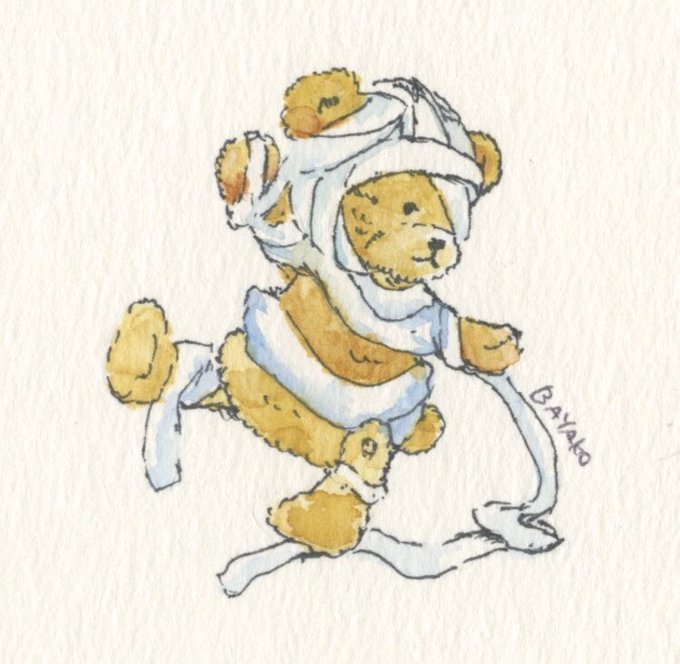 #テディベア #水彩 明日納品するのミニ原画です。ミニ原画も新作が4枚あるのでお楽しみに〜