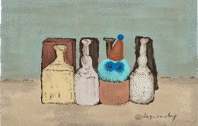 モランディの静物画に一緒に描かれたジーニーちゃん🥕(雰囲気模写) #モルカーファンアート #PUIPUIモルカー