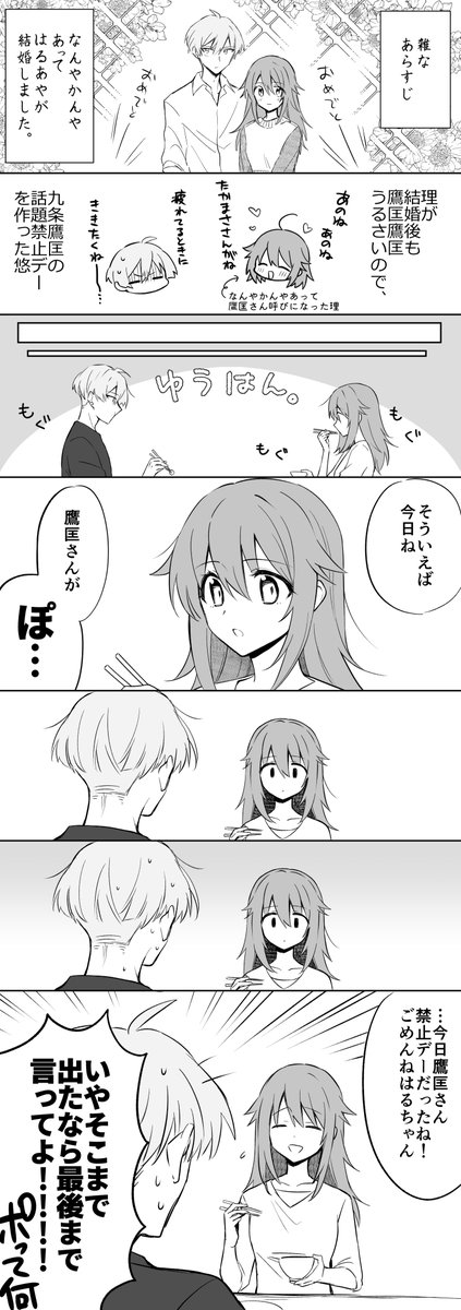 なんやかんやあって結婚したはるあやのよくある日常 ※当たり前のようにあや→たか要素あり ぽに続く言葉は特に考えてないです。