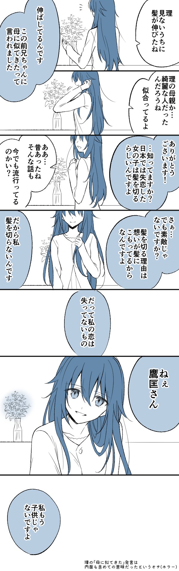 102 487 第5部14章あたりの九条家妄想 悠と理ちゃんの電話を盗み聞きしてソワソワするズールのお兄さん達が可愛かったので、九条家も理ちゃんの発言でハラハラしててほしい 23/06/08 01:05
