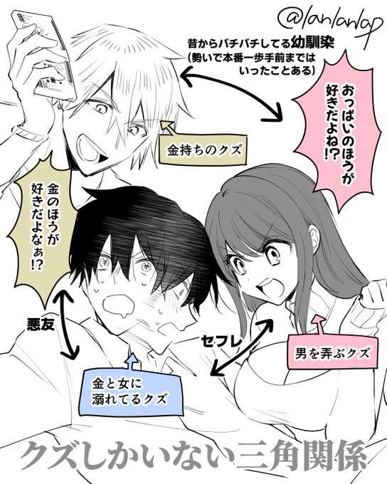 今日見た夢に出てきたクズの三角関係 こうなってたことしか覚えてない