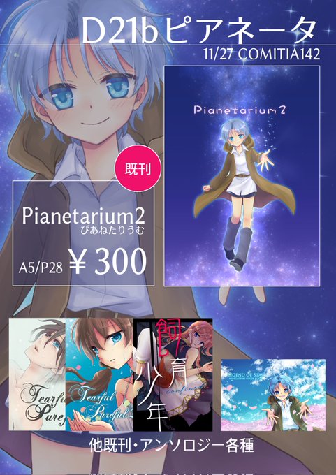 明日のCOMITIA138【L10a】ピアネータで現地参加しますっ( *˙ᗜ˙ )و✧ お品書きと新刊サンプル!新刊は『Pianetarium2』創作短編詰め合わせ本です〜〜各作品の内容知らなくても読めると思うので軽ーくおつまみ程度に楽しんでもらえたら! #COMITIA138 #コミティア138