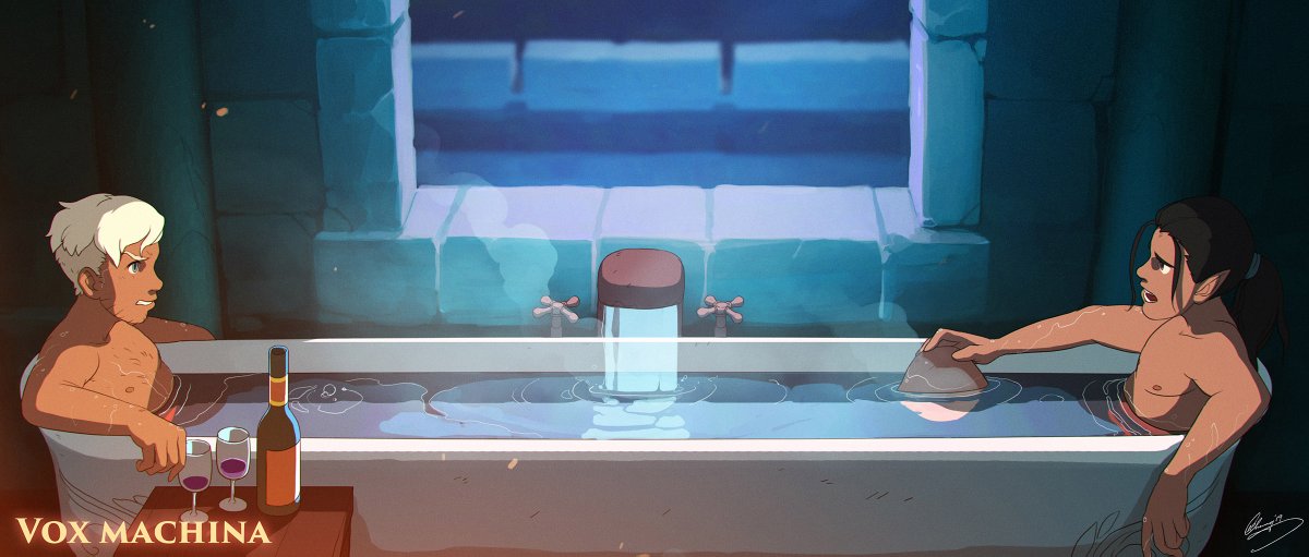 C2 Rerun - The Mighty Nein! celebrating the reunion I thought I'd switch gears and slip in a few for them :) Duplicity! and bathhouse time before shit really hits the fan, kicking off the big story. And of course, Avantika & Fjord #criticalrolefanart #CriticalRoleSpoilers
