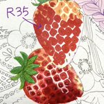 🍓いちごの塗り方🍓 ①明るい部分にY0000を塗り、種を囲うようにR02を塗る。 ②ベースとなるR35を光の当たる部分を避けて塗る。 ③白抜き部分にRV21を塗る。 ④色がくっきり分かれているのを馴染ませ整え、濃い影にRV37を塗る。所々B60とB63も使用。 ホワイトを入れて完成! #コピック