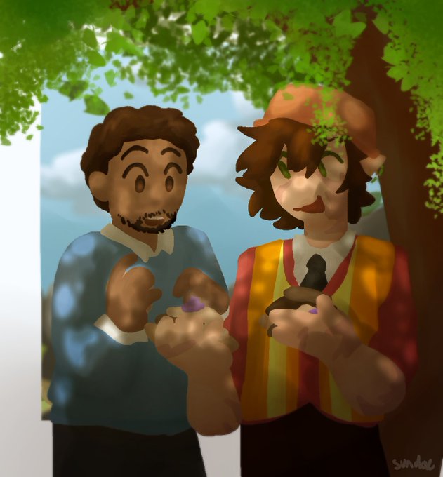 day 3: COOKIE 🍪 first time drawing bigb... bit scared 🙏 I honestly gave up on lighting and shading and backgrounds and stuff.. I just wanted to draw this idea :')) #doublelife #hermitcraft #hermittiber #bigbfanart #goodtimeswithscarfanart (apologies bc its so messy aaa)