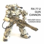 お父さんがま〜たバカカッコいいガンキャノンを作ったもんでこれも是非見てほしい バイザーをホログラムにするのは俺じゃ思いつかんて… 参考にしたのはドイツのマウザー社製30mm機関砲「MK30」と大友克洋×カトキハジメの「武器よさらば」、他にも #ガンプラ #ガンプラの画像貼るとRTされると聞いて