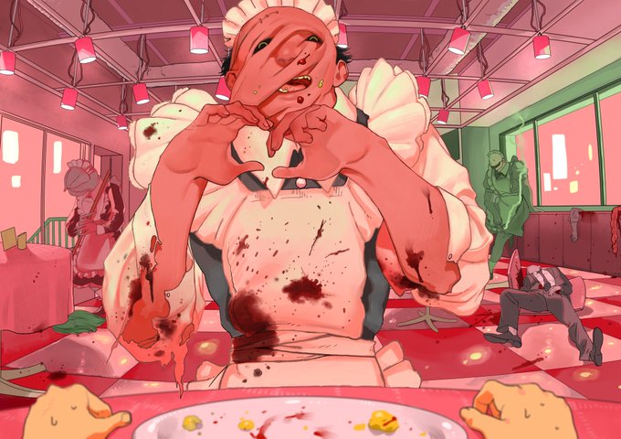 4 26 怪談レストラン風 全キラー描こうと意気込んだらマイコーまで描いて力尽きました。←早すぎ #dbd #DbDアート 23/02/22 21:11
