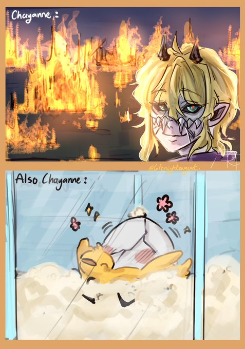 Admin swap HC time :D The most obvious thing that their eye color swap and the cracks as well. The horn changes in pigment, shape and position of horns stay has their original shape :D #Chayannefanart #tallulahfanart