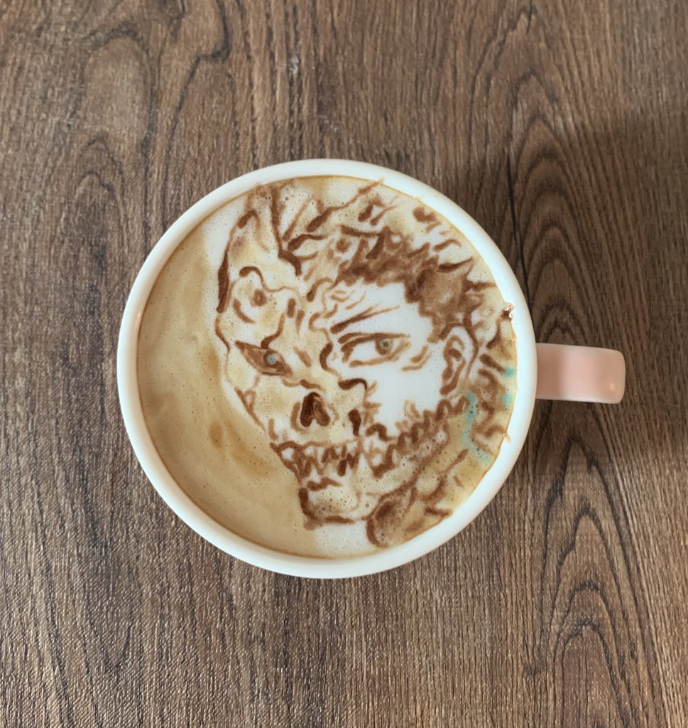 死神坊ちゃんと黒メイドのアリスと坊ちゃんのラテアート。 原作最終回本当に素敵でした。いつまでも2人に幸せが訪れますように…🍀 アニメ2期も楽しみです。 #死神坊ちゃんと黒メイド #死神坊ちゃん #ラテアート #デザインカプチーノ #イラスト #お絵描き #模写