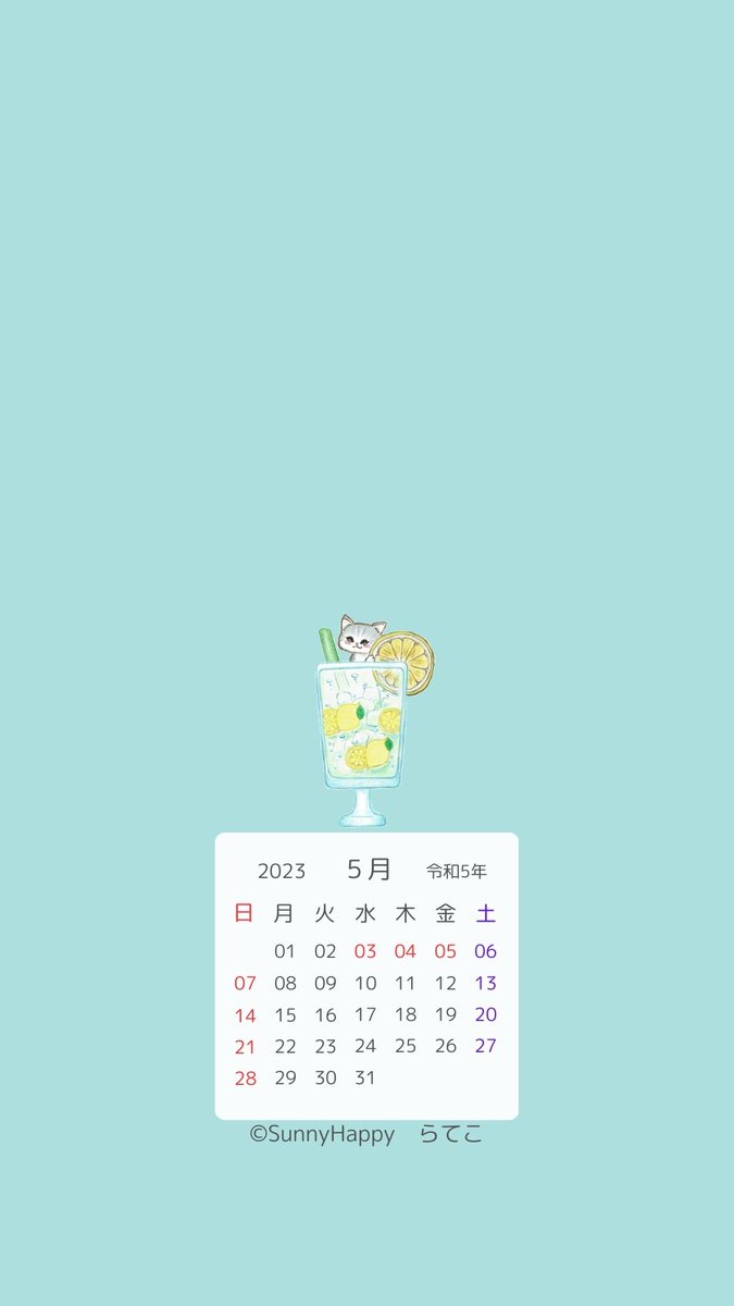 #5月になったのでフォロワーさんに自己紹介しようぜ 3日になってしまいましたが、待ち受けカレンダー出来ました♪ 個人の範囲内でお楽しみいただければと思います。 さわやかなレモンソーダちゃんです🍋