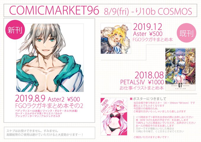 【C96】夏コミ1日目に参加します、新刊はFGOラクガキ本です。 通販はメロンブックスさんで予約が始まっています、どうぞよろしくお願いいたしますー! melonbooks.co.jp/detail/detail.…
