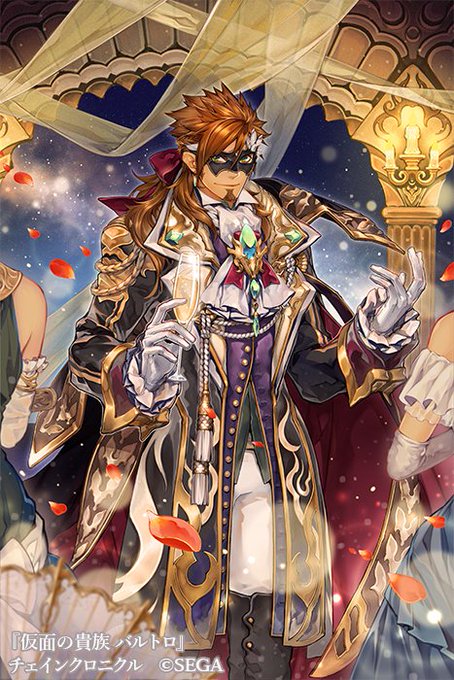 チェインクロニクル、6/1からのイベントに登場の『仮面の貴族 バルトロ』のイラストを描かせていただきました、どうぞよろしくお願いいたします!髪とかとてもブラッシングしたんだろうと思います。CVは杉田智和さんです!SDキャラもかわいい… chronicle.sega-net.com #チェンクロ