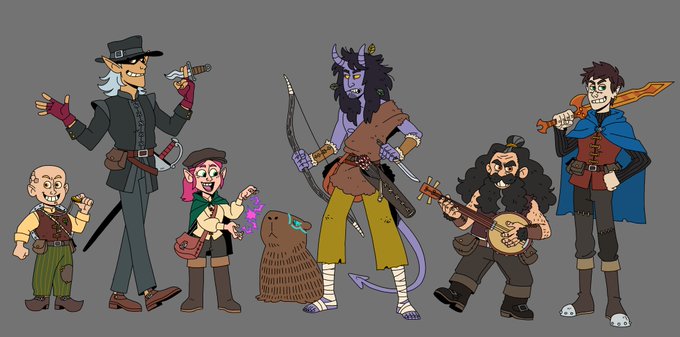 I think I made this one like a month ago (aproximately) anyways here's my dnd party. From right to left we have Paladin McPaladin, Totally not LupinIII pose, The punching bag wizard and My brother playing himself #dndart #DnDcharacter