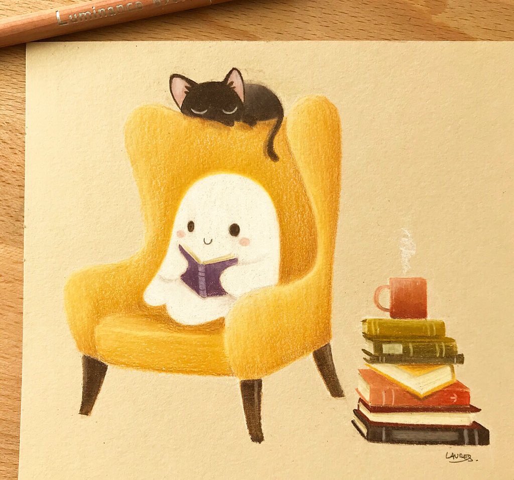 🍂✨Little ghost reading✨🍂 #ghost #Halloween #Halloween2020 #artwork #illustration #illustrationartists #art