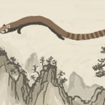 これはAIに狗子図っぽくレッサーパンダの絵を描いてもらった風に自分で描いたイラストです。