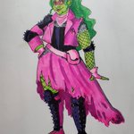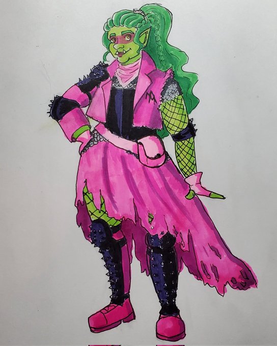 My lovely glamour bard Apolline and her party have been dragged to a post apocalyptic future by an angry fae so obviously the first thing she did was get a mad max style outfit #DnDcharacter #dndart #dnd5e #dungeonsanddragons #artistsontwitter