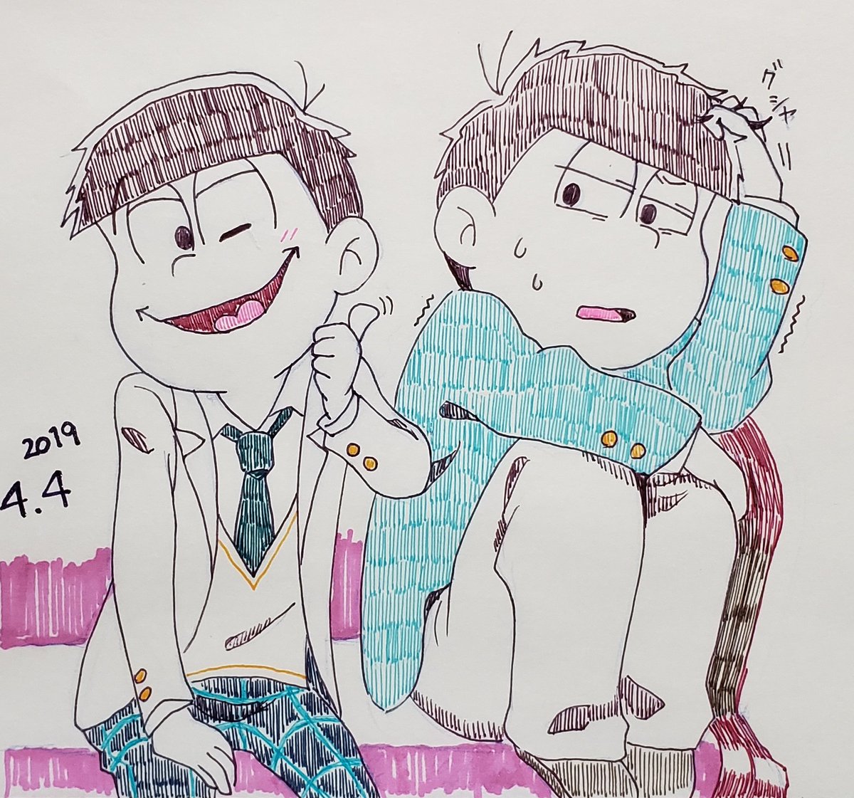 1 8 #春のペン松り #インク松月間 落書き色松 19/04/29 16:04