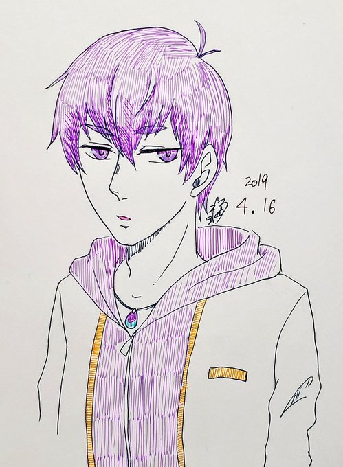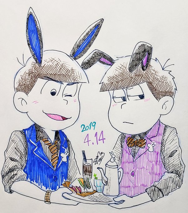 #1日1四男2019 #四男強化月間 #インク松月間 #春のペン松り かなり遅刻した🐺💦 黒兎カライチ🐰💙💜