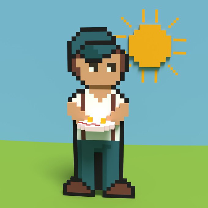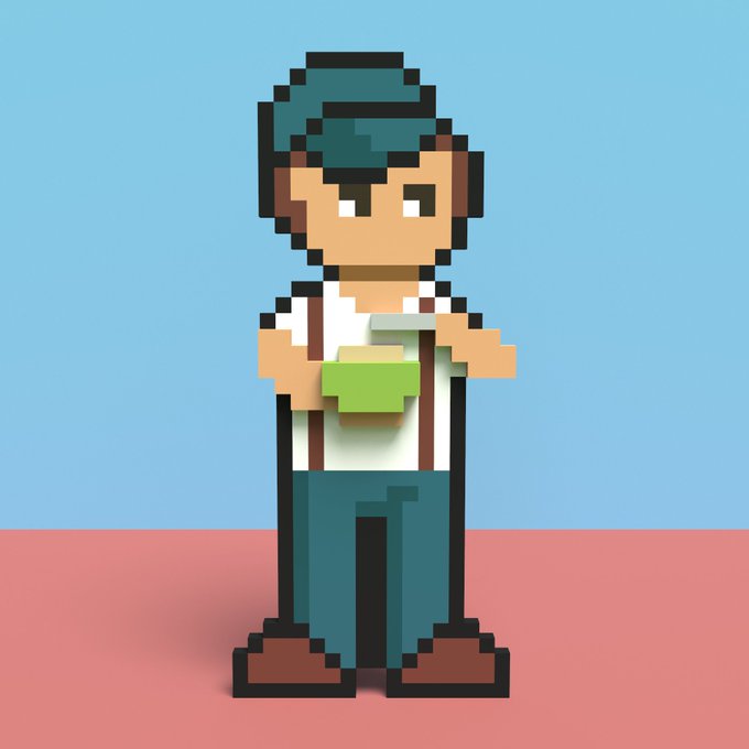 Wow, I'm so close to 100 followers! Anyway we can make the happen today? 😊 And here's a sneak peak of the Candyman! He's still busy stocking those shelves. #NFTCommunity #nftart #NFTartists #voxel #voxelart #nfts #Candy