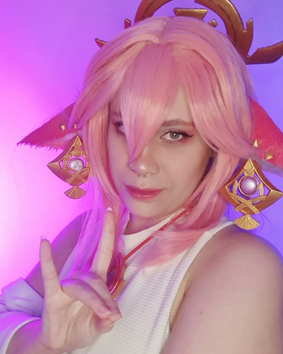 O retorno da raposinha, agora com a diadema hein 🦊🦊🦊 Trabalhar pra poder fazer o cosplay completo e poder fazer um ensaiozinho legal — Yae Miko, de @GenshinImpact #GenshinImpact #Cosplay #YaeMiko #GenshinCosplay