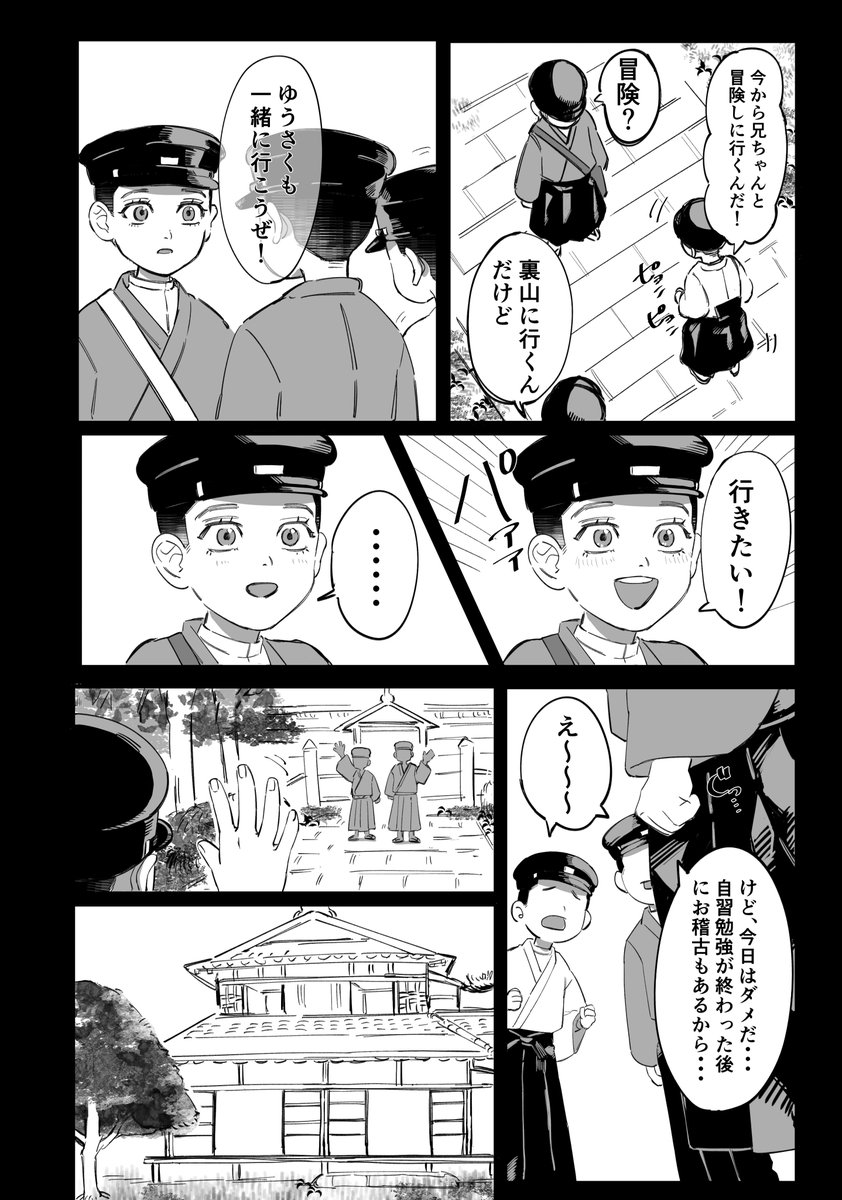 94 683 11/23(いい兄さん)ネタ漫画③ ラストです。オチは無いです。 尾が頑張ってお兄ちゃんする現パロ。 ※CP要素無しで描いてるけど勇尾勇の民が描いてます。 ※勇作の髪は捏造です。 23/03/07 18:02