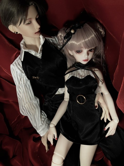#今夜のドール撮影120分一本勝負 お題【たわむれる】過去写真 撮影中に2人して何してんの?😶 「ほっぺむにむに🐙」 「首こちょこちょ🍓」 #MyouDoll #Michelle #TelesthesiaDoll #俊贤