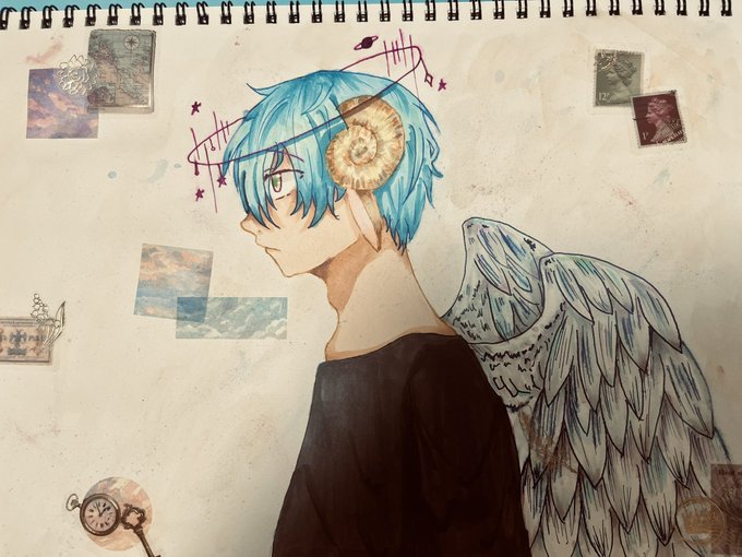 0 11 アンティークぼく!かっこよく!って思ったがちゃんとダサくなった #イラスト #天使 #羊 #青髪男子 #イラスト好きな人と繋がりたい 22/09/11 23:57