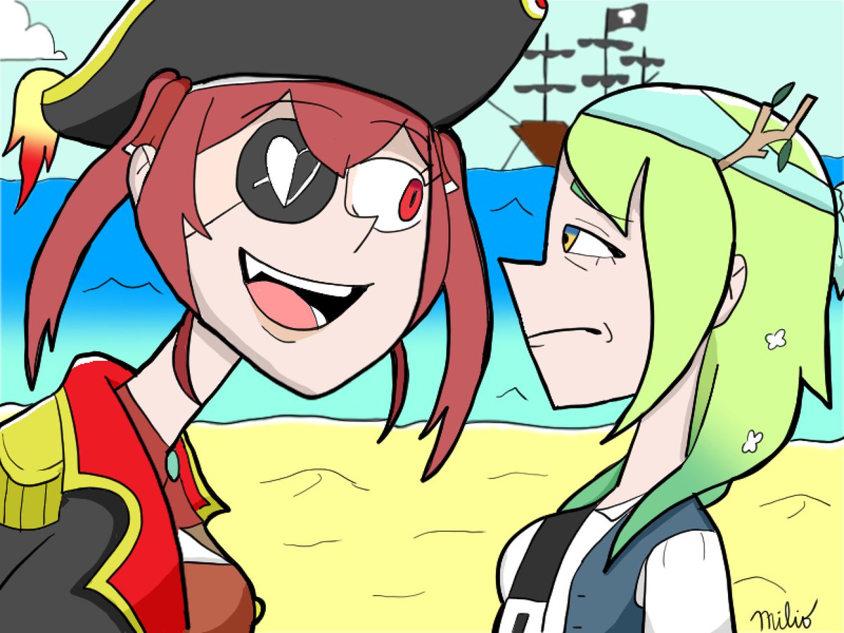 I've recently watched the black flag streaming of fauna, so I decided to draw this #FineFaunart #マリンのお宝 #PiratesoftheCaribbean