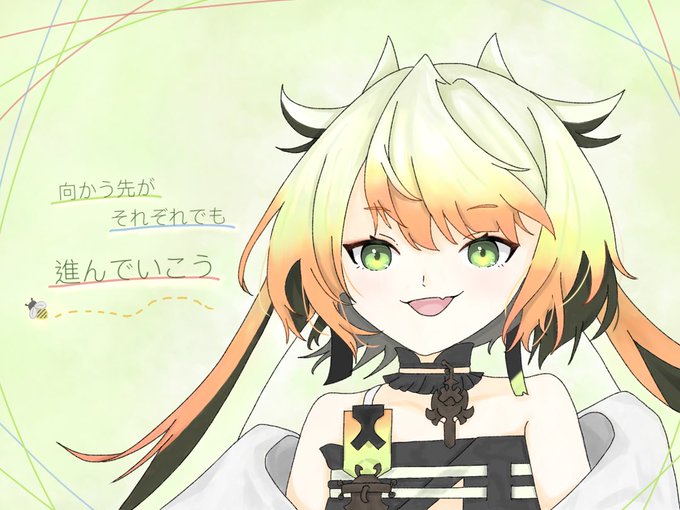 卒業歌枠聴きながら描いたらくがき あーこのこれからにたくさんの幸あれ〜!!🦖🎖️ #あーこといっしょ #アカネ色の世界