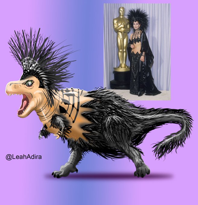 In my ongoing "Fierce Dinosaurs" series, I was requested to illustrate a Tyrannosaurs Rex in the style of "That dress Cher wore at the Oscars, you know the one". #Cher #paleoart #DigitalArt #Fanart #TRex #TerribleLizardQueen