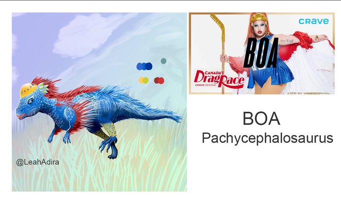 The hockey helmet inspired me! Drag Queen BOA as a pachycephalosaurus. #bitchonarrival #dragrace #rupaulsdragrace #pachycephalosaurus #paleoart #CanadasDragRace