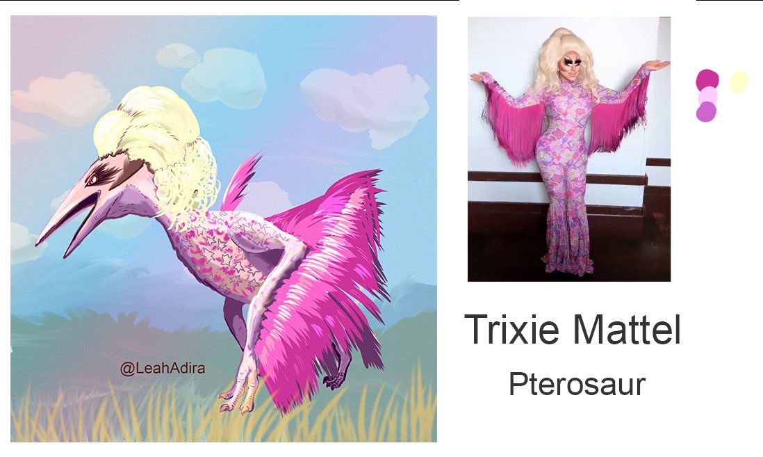 Pterosaur by request, in the fabulous style of Trixie Mattel. I had lots of fun shading everyone's favourite colour -- fringe! #trixiemattel #pterosaur #rupaulsdragrace #paleoart #digitalart