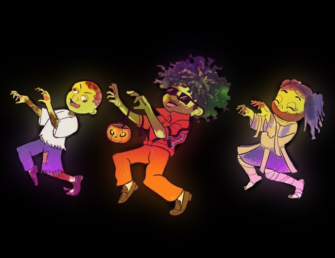 Happy October 5th! For today's Trick or Treatober we have kids doing the Zombie Thriller🎶😎 #blacktober #Blacktober2021 #drawtober #kidlit #illustration #ChildrensBooks