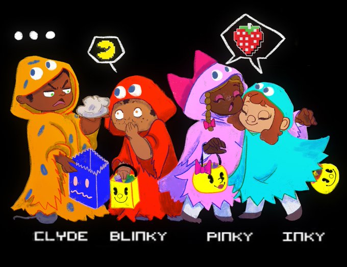 Its day 2 of #drawingwhileblack and #blacktober . And day 2 of my Trick or Treatober. Day 2 is #ghost . 👻The #PacMan ghost! Why is the orange named Clyde?😂 #kidlit #illustraion